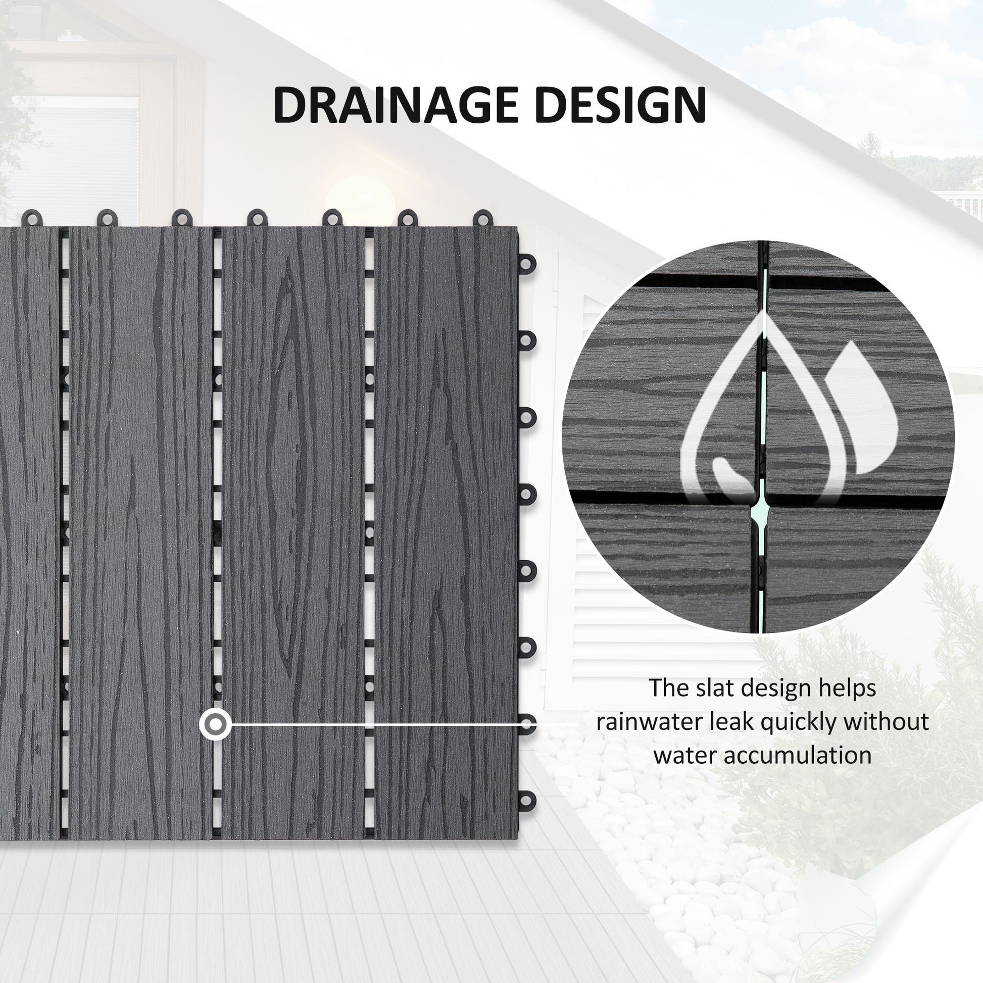 12x12 Interlocking Patio Tiles, 11PCS WPC Quick Interlocking, Resistant To Rot And Splintering, DIY, For Porch, Balcony, Grey