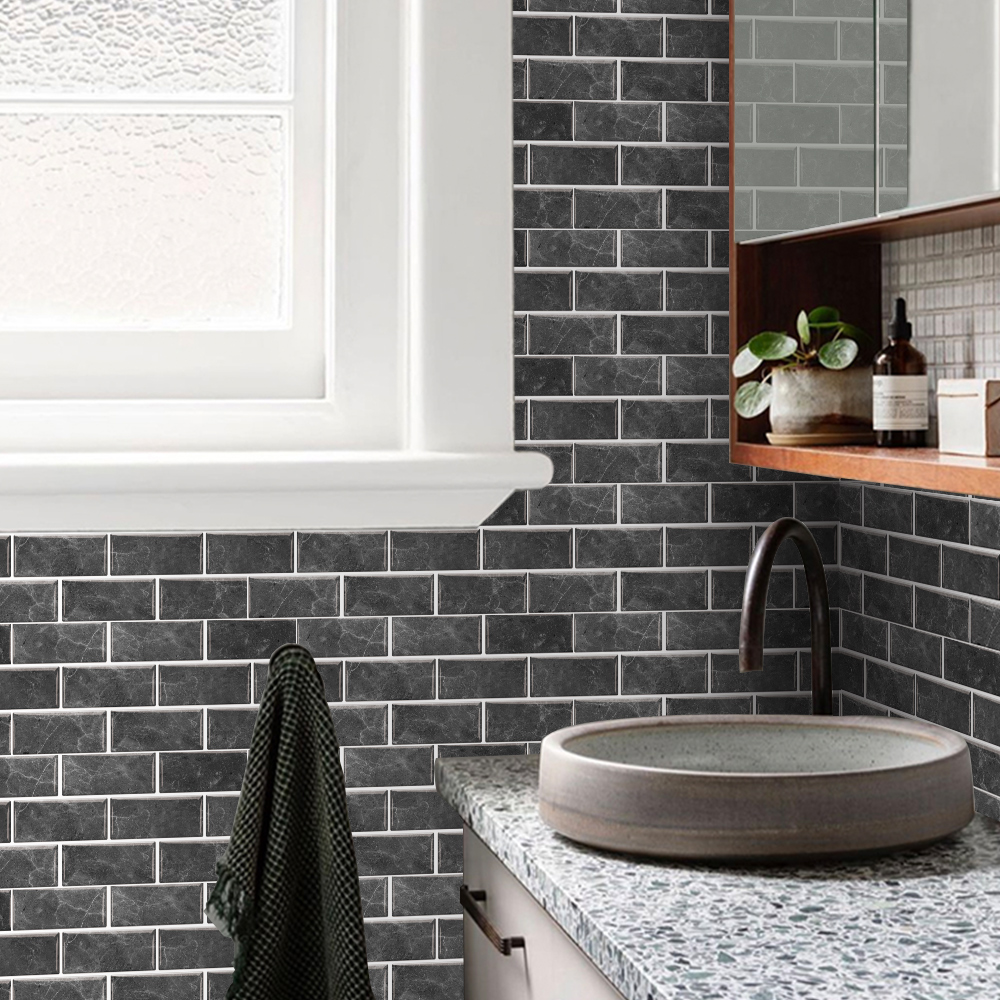 Dark Grey Textured PVC Self-adhesive Stone Marble Tiles With Smooth Surface And Waterproof