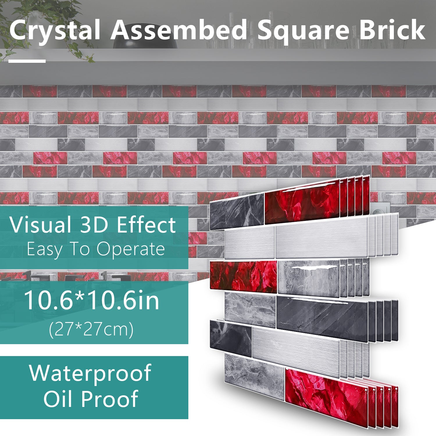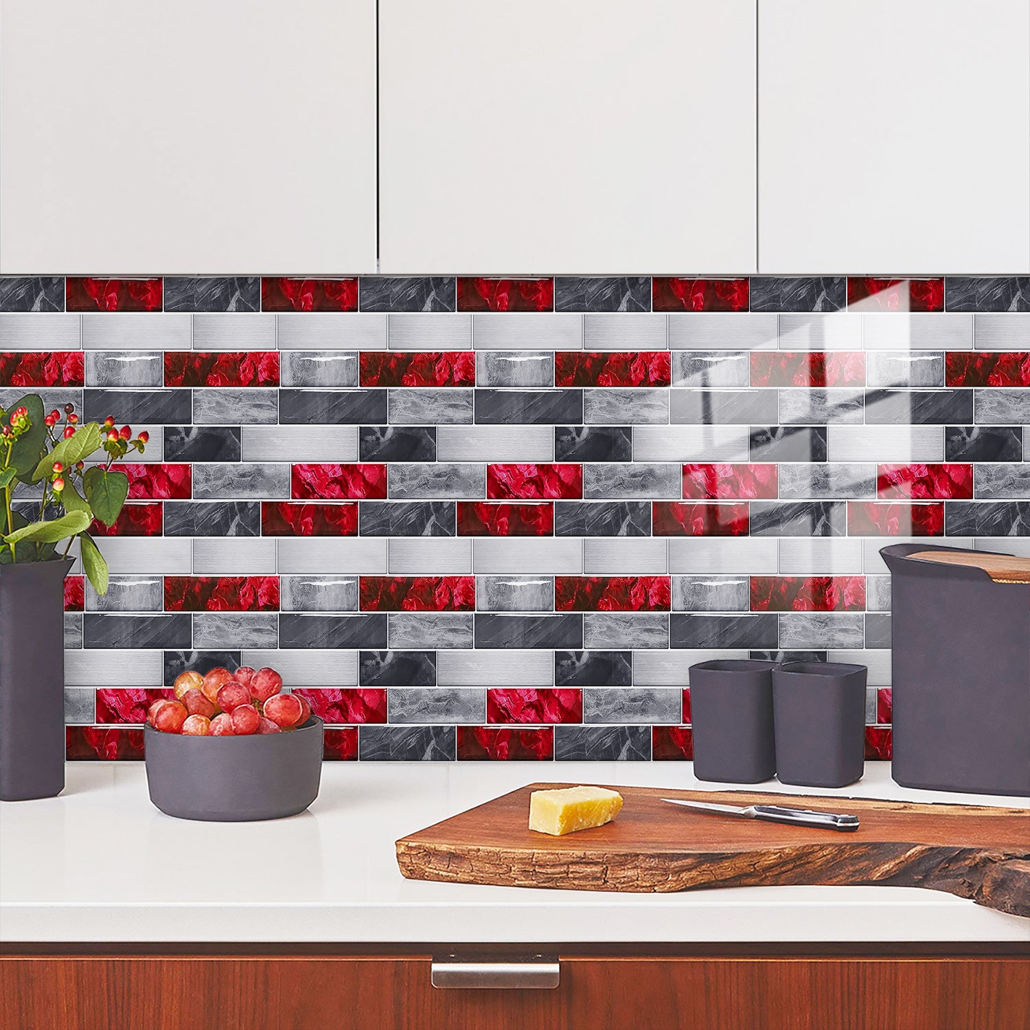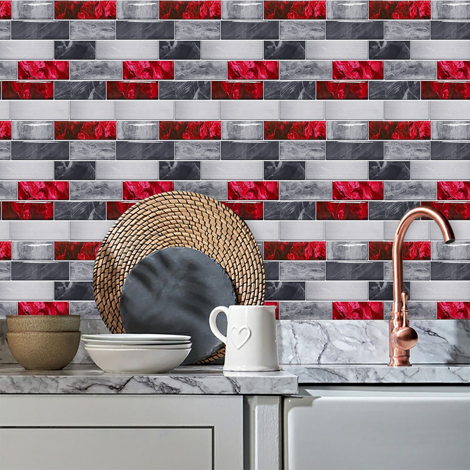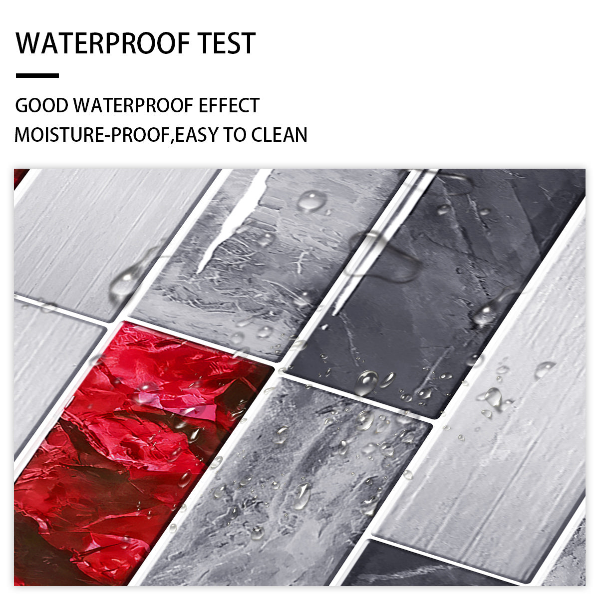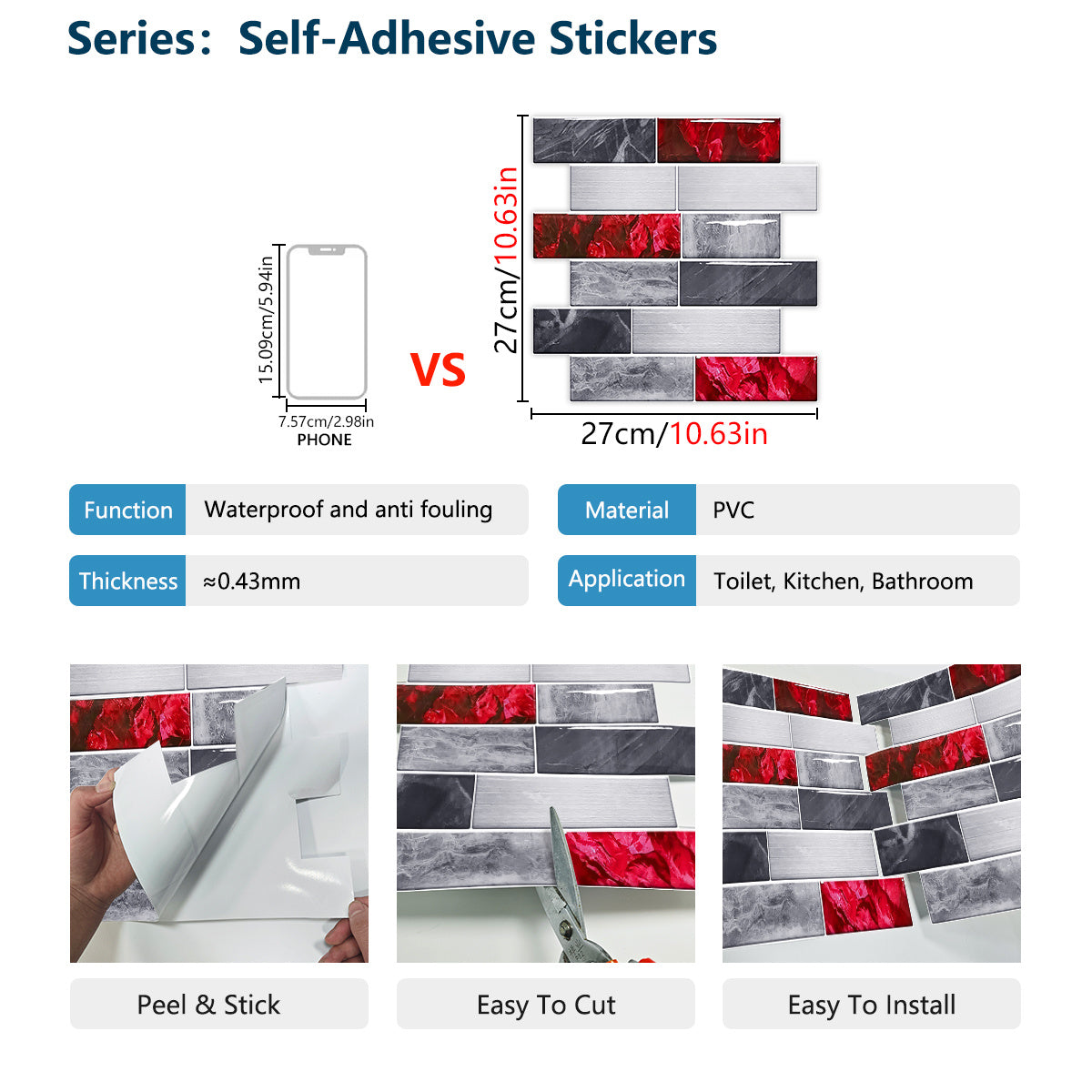 Red Marble Look Peel And Stick Wallpaper PVC Waterproof Self-adhesive Tiles Kitchen Splash-proof Bathroom Home Decoration Removable Without Leaving Glue